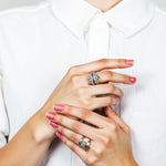Conçue pour capturer la lumière et sublimer la main, Cléophée se distingue par sa capacité à compléter aussi bien un look sophistiqué qu'un style décontracté.