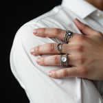 Inspirée par la roche volcanique noire, la Bague Obsidian est un symbole de puissance brute et d’élégance naturelle. Fabriquée avec un métal noir poli, elle reflète la beauté brute et la force indomptable de la nature. Sa surface lisse et éclatante en fait un choix distinctif pour les hommes au style affirmé.