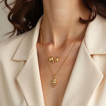 Laissez-vous emporter par la magnificence de Éoliane, un collier qui allie l'éclat intemporel de l'or et la pureté d'un cristal en forme de goutte. Ce pendentif majestueux, entouré d'une couronne de pierres scintillantes, capte la lumière avec une élégance spectaculaire.